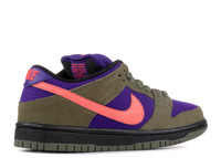 Featuring a contrasting mix of Medium Olive and Electric Purple, the Dunk Low Pro SB 'Medium Olive Atomic Red' emerges with a suede and canvas build. Atomic Red on the tongue and branding brings additional vibrant color to the look, while the shoe's puffy tongue and Zoom Air midsole support the fit. SKU: 304292 265 Colorway: Mdm Olive/Atmc R-Elctr Prpl Release Date: 7/1/13