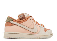 The Nike Dunk Low SB 'Trocadero Gardens' nods to the scenic attraction found in the 16th arrondissement of Paris. The upper blends pink nubuck panels with an amber brown suede on the toe box and collar. Light tan nubuck adorns the Swoosh and forefoot overlay. A pink Nike SB tag appears on the stuffed tongue, while a debossed Nike wordmark decorates the olive nubuck back tab. A grey rubber outsole gets a marbled finish for a textured aesthetic. SKU: FV5926 200 Colorway: Amber Brown/Guava Ice/Crimson Tint/Hemp/Neutral Olive/Pale Ivory Release Date: 7/18/24