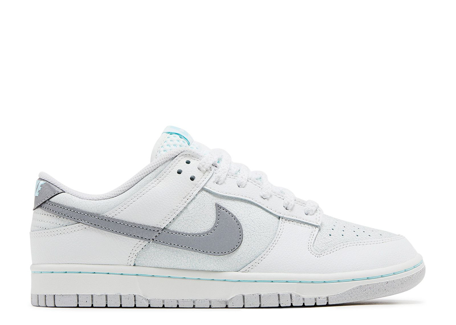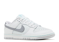 The Nike Dunk Low SE 'Winter Storm' rolls out an ice-blue, cracked leather upper. White tumbled leather overlays help bolster the eyestay, forefoot and heel areas. Reflective silver touches on the Swoosh and Nike-embroidered back tab add a touch of elegance, while the tongue is decorated with a Nike tag. These shoes have a traditional rubber cupsole with white sidewalls and a pale grey outsole. SKU: HQ3619 121 Colorway: Summit White/Glacier Ice/Vast Grey/Metallic Silver Release Date: 11/5/24
