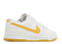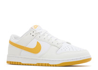 The Nike Dunk Low 'White University Gold' rocks a white leather upper with an amber-hued Swoosh. That same color carries into the Nike logos gracing the tongue tag, back tab and insoles. A durable cupsole with white sidewalls hold the look together, while a gold rubber outsole wraps up the look in style. SKU: DV0831 110 Colorway: White/University Gold/Summit White Release Date: 4/1/24