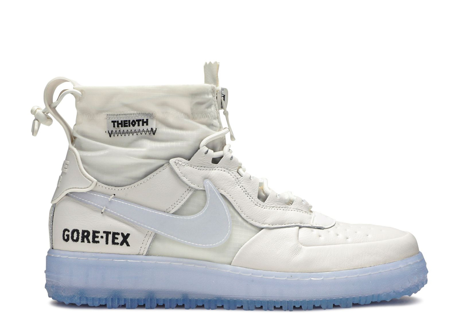 Revealed in October 2019, the Nike Air Force 1 High WTR from the 'The 10th' pack presented a retooled appearance via Gore-Tex tech and archived design components. The shoe is encased in a zipped ripstop bootie complemented by water-resistant Phantom textile and leather panels. A rubberized logo emblem on the heel and specialized fit confirm its functional vibe. The Swooshes and Air-infused sole complete the sneaker with icy translucent finishes. SKU: CQ7211 002 Colorway: Phantom/Phantom/Black/Clear Release Date: 11/1/19