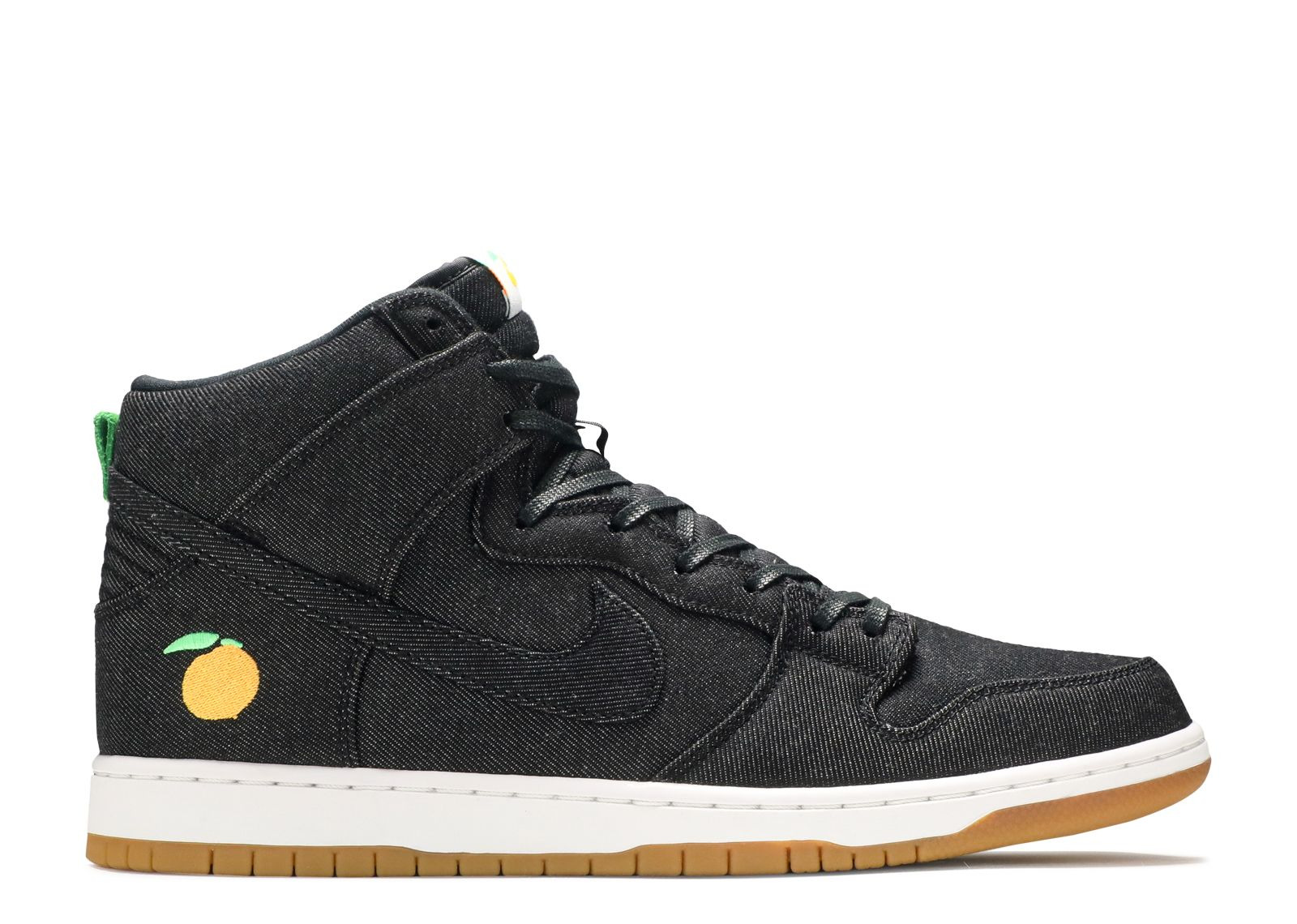 The Momofuku x Nike Dunk High Pro SB celebrates the forged connections between the skater society and the renowned noodle bar of David Chang in Manhattan's East Village. The design features an upper dark gray denim inspired by Momofuku's kitchen aprons and also contains the peach logo at the heel. Released in June 2017, a Momofuku Nike SB logo on the tongue, a black midsole and a gum outsole are also included in the sneaker. SKU: 881758 071 Colorway: Black/Black/White/Laser Orange Release Date: 6/23/17