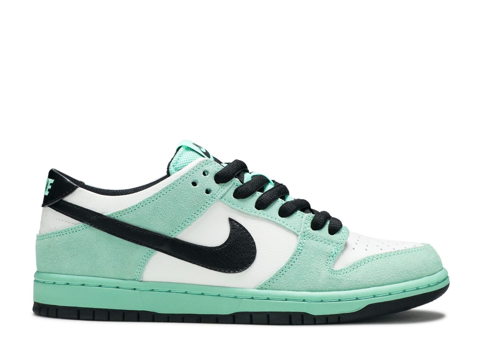 The SB Dunk Low 'Sea Crystal' features a colorway similar to the 2004 Nike SB Dunk High 'Sea Crystal.' Designed for skateboarder Ishod Wair, the shoe emerges with a slimmer tongue, while Zoom Air in the heel of the insole provides cushioning. The leather and suede construction includes a mix of Sea Crystal and Ice Green, contrasted by black on the Swoosh, laces, lining and heel patch, with more black finishing off the outsole. SKU: 819674 301 Colorway: Ice Green/Black-Sea Crystal Release Date: 10/22/16