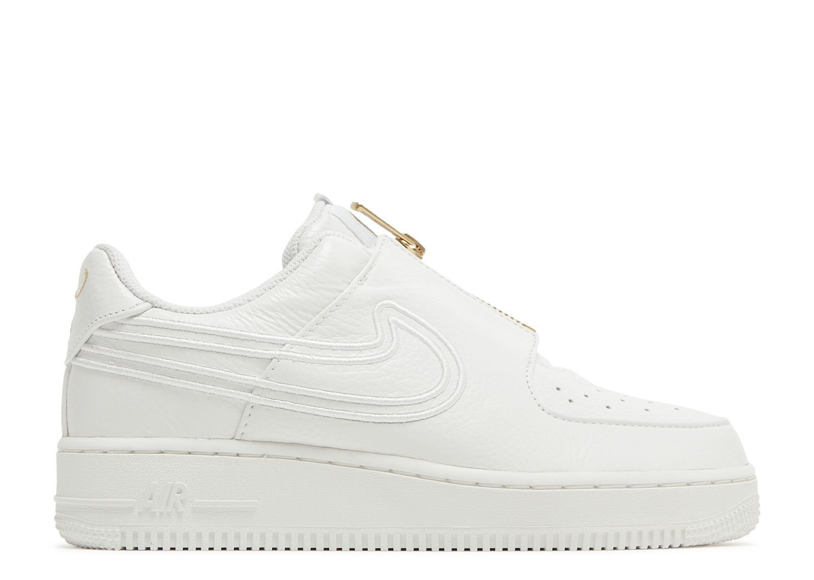 The Serena Williams x Nike women’s Air Force 1 ‘Summit White’ is a luxurious take on a retro classic fit inspired by the Queen of Tennis. The upper in white tumbled leather features a gold-threaded Serena signature on the heel tab and the dates of her championships stitched on the tongue. Traditional laces are replaced by a shroud secured by a gold zipper and emblazoned with a stitched Swoosh. A standard rubber cupsole features an interior Air-sole unit for optimal cushion and support underfoot. SKU: DM5036 100 Colorway: Summit White/Summit White Release Date: 2/18/22