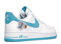 The Space Jam x Air Force 1 '07 Low 'Hare' released as part of a larger collection for Space Jam: A New Legacy. Giving the nod to LeBron James' rabbit teammates, the shoe's upper is built with a white leather base, overlaid by Light Blue Fury suede on the Swoosh branding and heel patch. The woven tongue tag and lateral-side patch on the right shoe sport Bugs Bunny, while Lola Bunny appears on the left. Underfoot, Air in the heel of the rubber midsole provides cushioning, giving way to more Light Blue Fury on the concentric rubber outsole that offers traction. SKU: DJ7998 100 Colorway: White/Light Blue Fury/White Release Date: 7/16/21