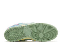 The Verdy x Nike Dunk Low SB 'Visty' takes design cues from the Japanese artist's Visty character, using a furry green upper with textured pastel blue suede overlays. Hits of pink land on the leather Swoosh and hairy collar. The inside of the tongue tag sports a Visty graphic, while a cream yellow midsole rides on a light green rubber outsole. SKU: FN6040 400 Colorway: Blue Gaze/Light Arctic Pink/Bicycle Yellow Release Date: 9/20/24