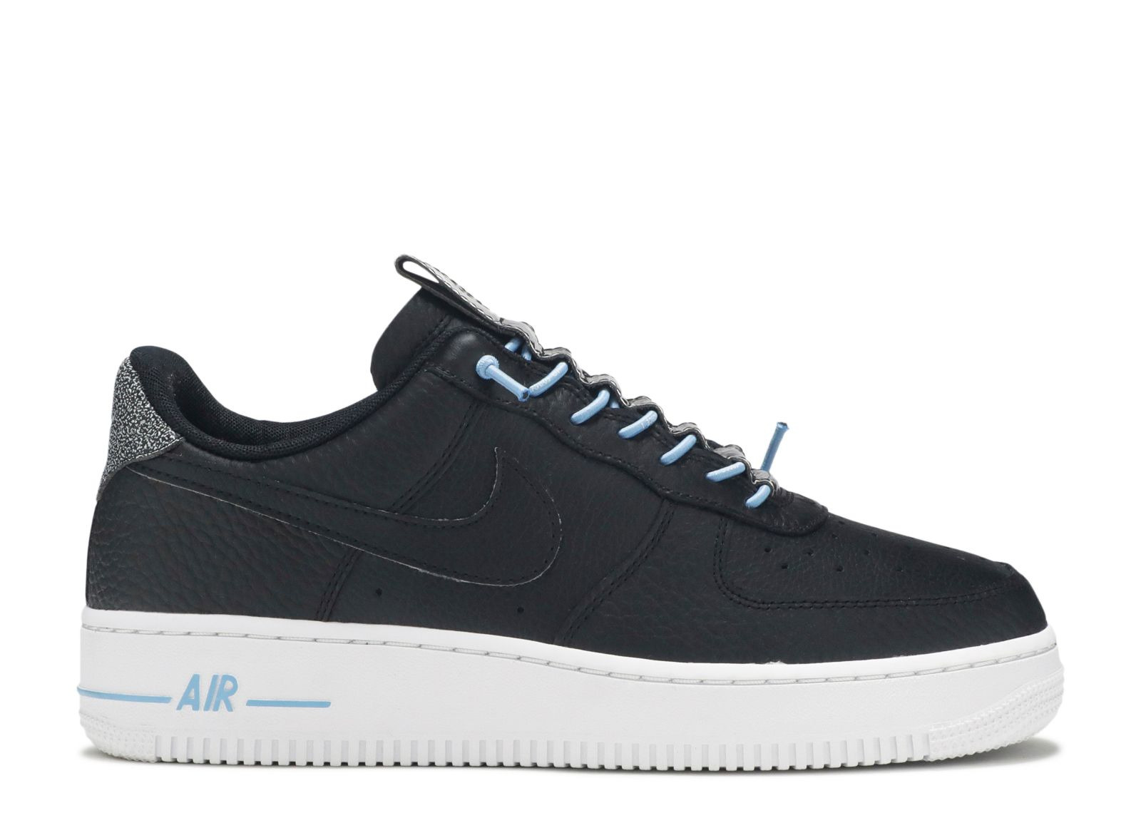 The Wmns Air Force 1 '07 Lux 'Black Reflective' brings a lifestyle touch to the classic basketball shoe. Built with black tumbled leather on the upper, the design features a speckled heel patch and blue rope laces. Underfoot, a white Air midsole provides cushioning and contrast, giving way to a concentric pattern on the outsole for traction. SKU: 898889 015 Colorway: Black/Light Blue/White/Black Release Date: 12/1/19