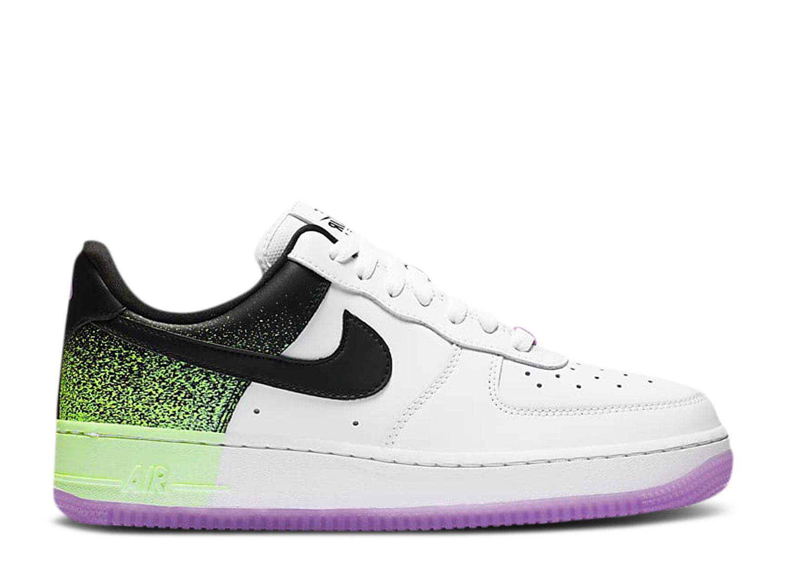 The Wmns Air Force 1 '07 'Splatter' brings a unique accent to its classic basketball construction. Built with white leather, the upper is contrasted by black on the Swoosh and heel, while the heel itself is highlighted by a Barely Volt paint splatter effect. More Barely Volt marks the heel of the Air midsole, while underfoot, the concentric rubber outsole appears in Fuchsia Glow. SKU: CZ8097 100 Colorway: White/Barely Volt/Fuchsia Glow/Black Release Date: 8/1/20