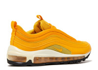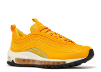 Designed for Summer 2018, the Nike Women’s Air Max 97 gets a vibrant update in the ‘Mustard’ colorway. The all-Mustard model retains the sneaker’s water ripple-influenced roots, with its tonal branding, signature wavy lines, and full-length air unit. A classic white midsole and black outsole provide stark contrast to the bright colorways for a clean finish on the classic design. SKU: 921733 701 Colorway: Mustard/Mustard-Buff Gold-White Release Date: 11/15/18