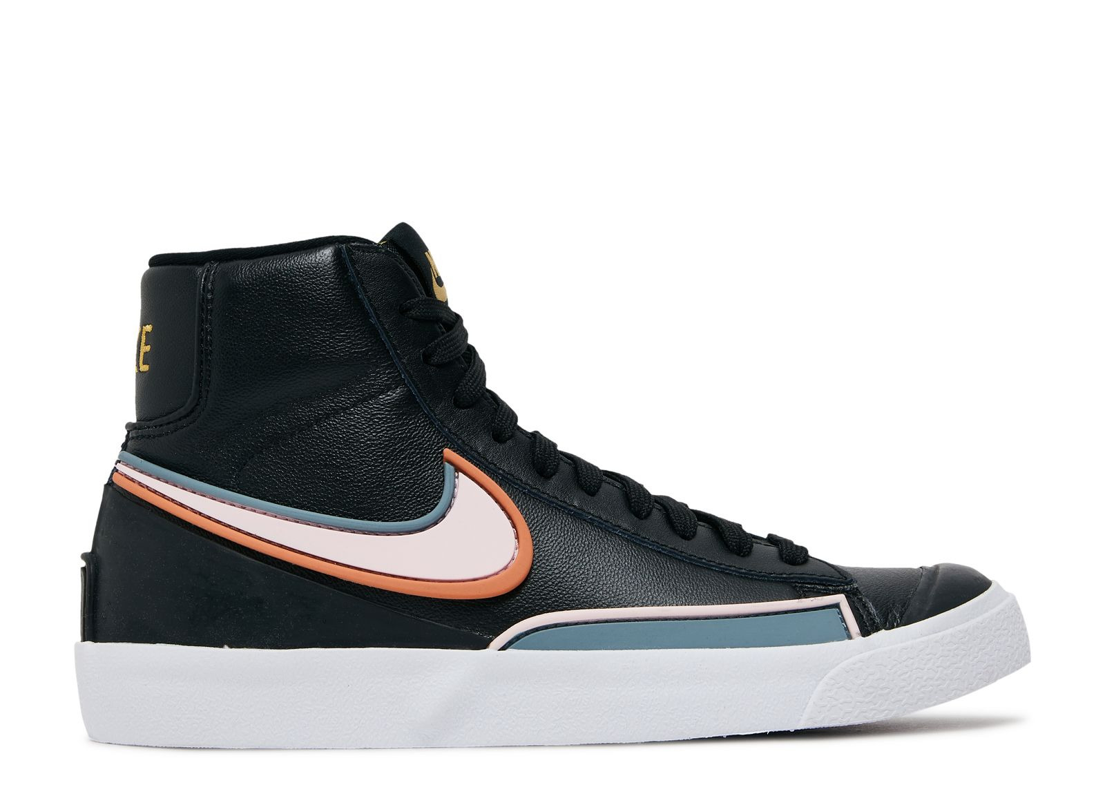 The Wmns Blazer Mid '77 'Infinite Black' brings pastel accents to its classic basketball construction. Built with leather, the shoe's upper appears in black, with the Swoosh and forefoot overlay highlighting the look in Ozone Blue, Healing Orange and Light Arctic Pink. The branding adds further color in gold, while an exposed-foam tongue adds to the aesthetic. Underfoot, the white vulcanized rubber midsole contrasts the look, giving way to a herringbone outsole for traction. SKU: DC1746 001 Colorway: Black/Ozone Blue/Healing Orange/Light Arctic Pink Release Date: 10/26/20