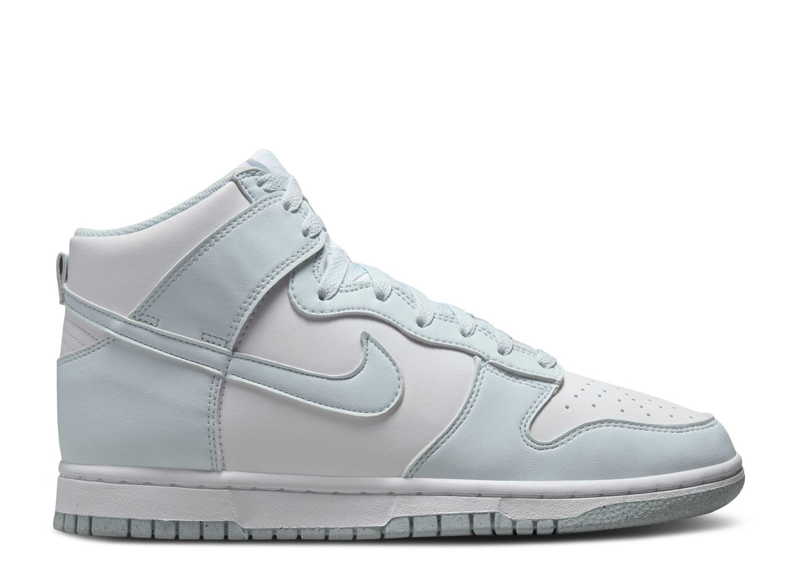 The Nike Women's Dunk High Next Nature 'Glacier Blue' brings a white, synthetic leather upper, touched with icy blue overlays and a matching Swoosh. A woven Nike tongue tag gives it a signature look, whileNike's retro Sunburst logo adorns the insoles. A classic rubber cupsole gets white sidewalls and a pale blue outsole to finish out the look. SKU: FV5960 100 Colorway: White/Glacier Blue/White Release Date: 7/1/24