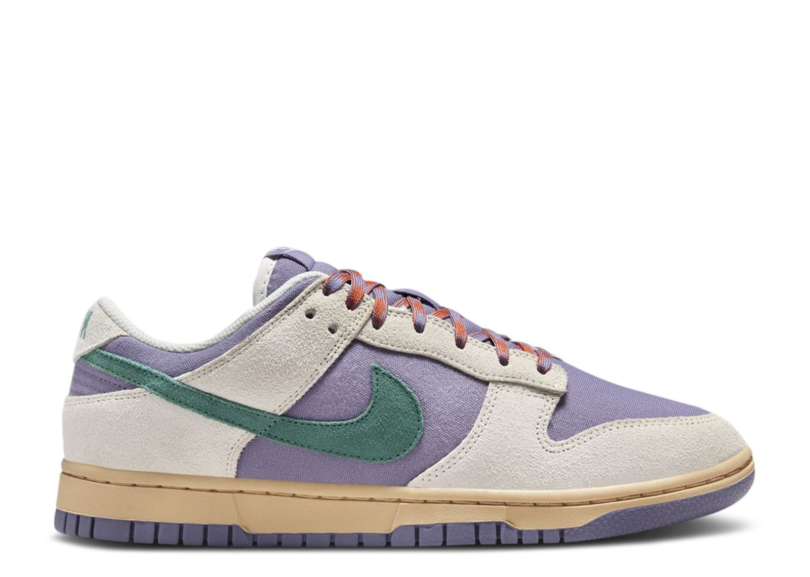 The Nike Women's Dunk Low 'Daybreak Bicoastal' rolls out a lavender-colored canvas upper, accented by off-white suede overlays on the forefoot and heel areas. An emerald suede Swoosh sweeps across the side, matching the debossed Nike wordmark on the back tab. A rubber cupsole includes aged sidewalls and a violet rubber outsole to finish the look. SKU: HF5030 030 Colorway: Phantom/Bicoastal/Daybreak/Sesame/Burnt Sunrise/Light Laser Orange Release Date: 5/13/24