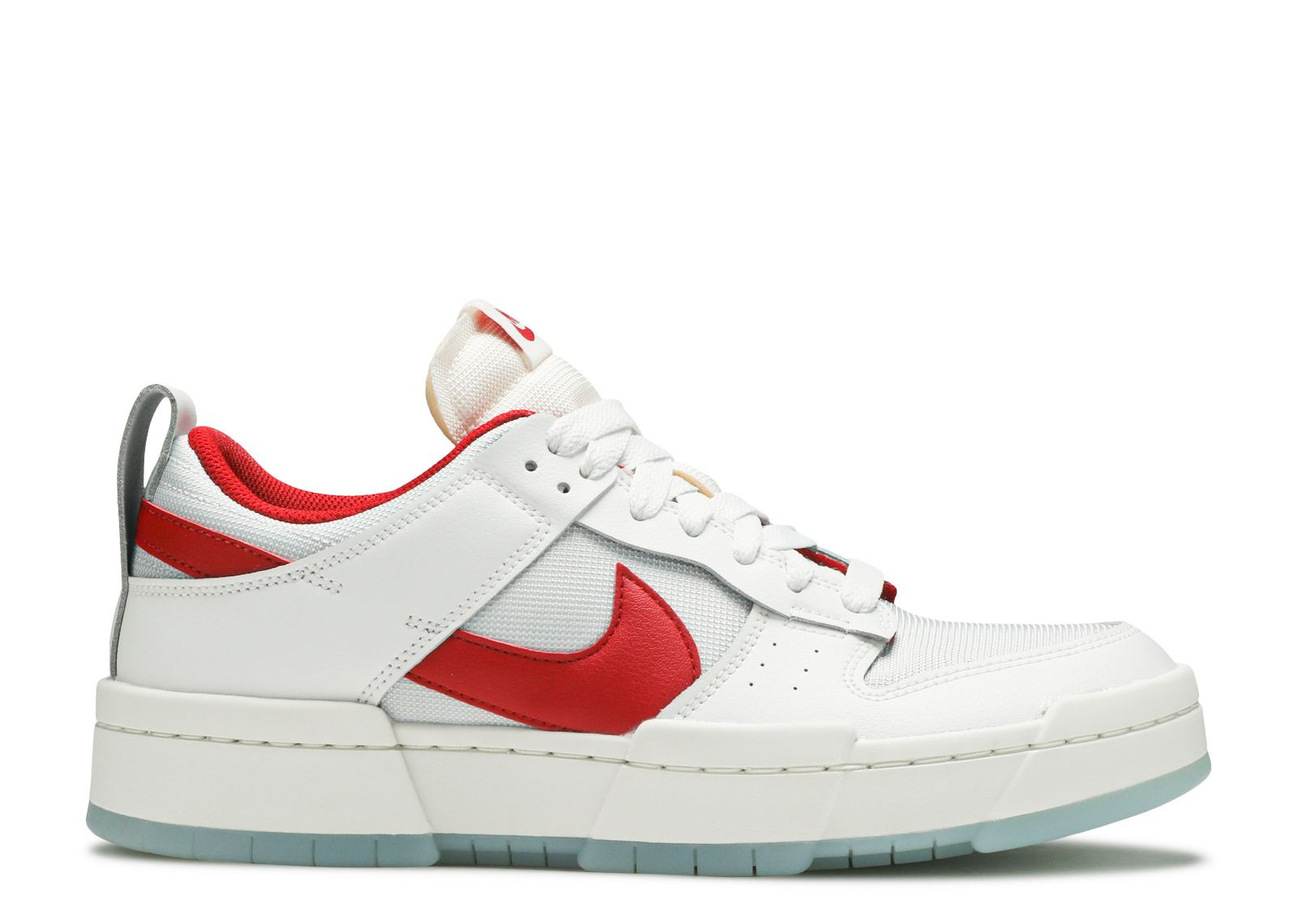 The Wmns Dunk Low Disrupt 'White Gym Red' brings vibrant accents to its bold construction. Borrowing elements of the 1984 Air Train, the upper is built with a mesh base overlaid by tonal leather, accented by Gym Red on the tongue tag, inner lining and Swoosh branding. A heel pull-loop is included for easy on and off, while underfoot, an exaggerated midsole gives way to an icy translucent rubber outsole for traction. SKU: CK6654 101 Colorway: Summit White/Gym Red/Photon Dust/Sail Release Date: 9/4/20