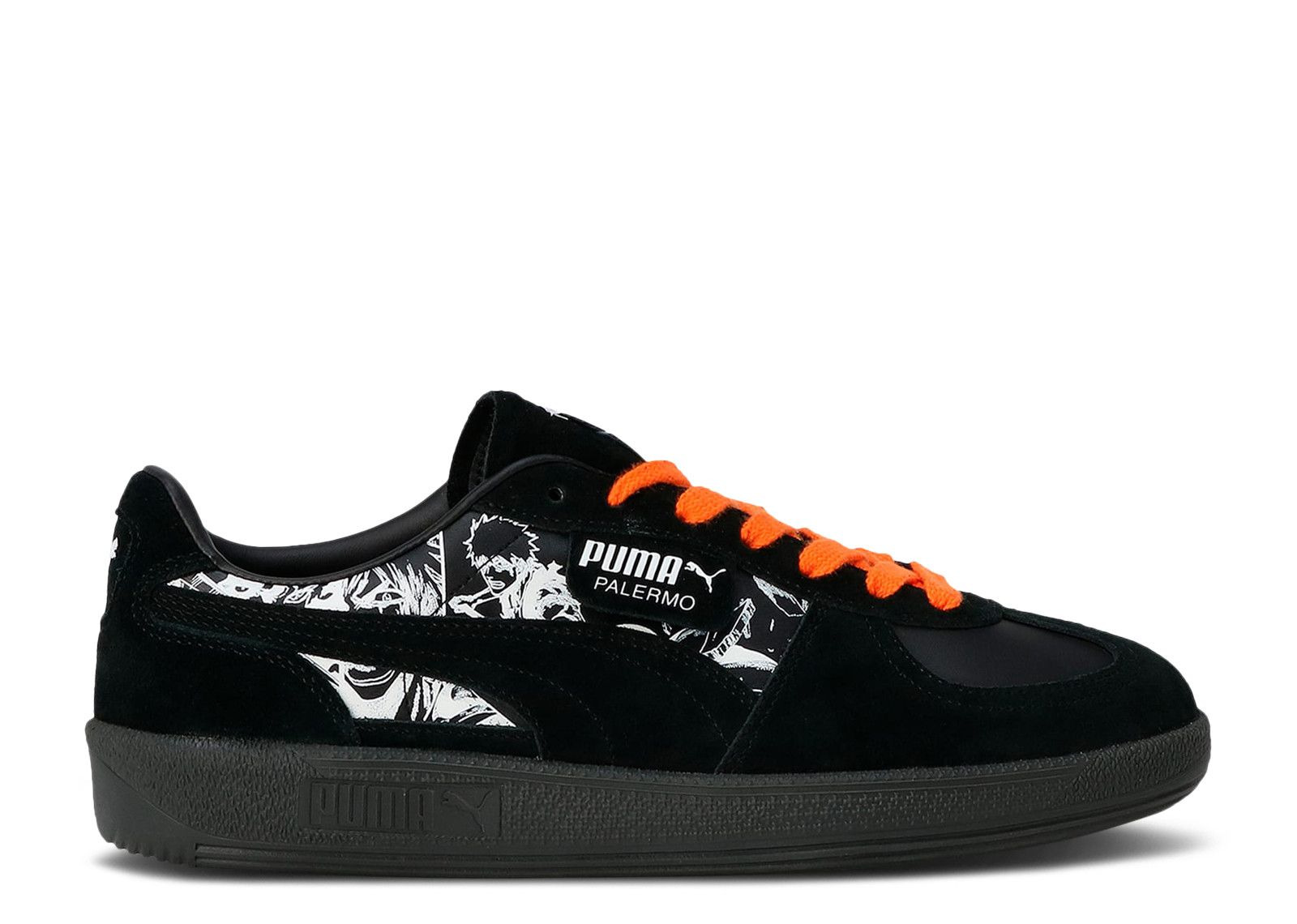 Released only in Japan, the Bleach x PUMA Palermo 'Ichigo Kurosaki' nods to the anime series' key protagonist. Orange laces secure the black leather upper, tooled with matching suede forefoot and heel overlays. A black suede Formstrip meets a side panel flooded with a manga-style allover Ichigo graphic. Both brand logos adorn the tongue tag and insoles to keep the signature look. The black rubber cupsole underfoot rounds out the look in style. SKU: 403445 01 Colorway: Black/White Release Date: 11/15/24