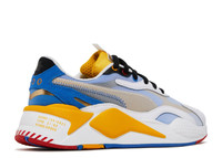 Inspired by Sonic the Hedgehog, the RS-X3 'Golden Rod' released as part of a collaboration with Sega. Built with a textile base, finished primarily in blue, the upper is overlaid by a transparent synthetic film, white leather and blue suede. The heel includes gold rings, while co-branding marks the tongue tag. Underfoot, high-score text marks the sculpted foam midsole, which provides cushioning. SKU: 373427 01 Colorway: White/Golden Rod Release Date: 2/7/20