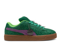 The Teenage Mutant Ninja Turtles x PUMA Suede XL 'The Four Turtles' has a green suede upper covered in an embossed reptilian texture, tooled with Formstrips flooded in purple, blue, orange and red. Both brand logos land on the tongue tag, while lace jewels showcase the face of each of the turtles. A traditional gum rubber sole unit undergirds the design. SKU: 401304 01 Colorway: Vine/Gum Release Date: 2/14/25
