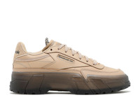The classic tennis shoe emerges with a bold makeover on the Cardi B x Wmns Club C 'Sahara.' Made in collaboration with the rapper, the shoe's upper is built with leather, finished in Sahara and contrasted by Core Black branding. A braided tongue pull-loop offers easy on and off, with an exposed-foam tongue adding to the aesthetic. Suede marks the heel patch, while underfoot, a semitranslucent platform sole unit supports the fit. SKU: H05182 Colorway: Sahara/Core Black/Sahara Release Date: 4/23/21