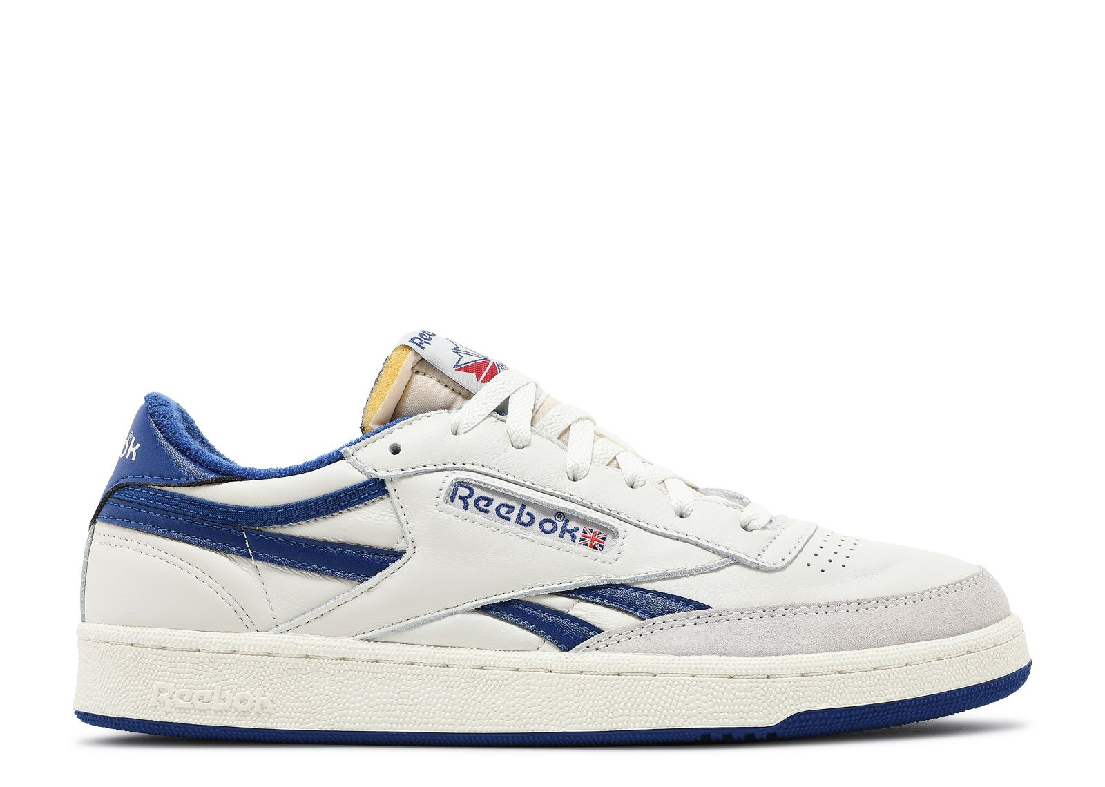 Released in June 2021, the Club C Revenge Vintage 'Chalk Collegiate Royal' features a look drawn from 80s tennis shoes. Built with leather, the shoe's upper appears in white, complemented by Collegiate Royal on the Vector Branding and heel patch. An exposed foam tongue adds to the aesthetic, while terry cloth on the inner lining is included for comfort. Underfoot, the rubber cupsole that anchors the build includes an exposed EVA wedge on the medial side. SKU: FW4863 Colorway: Chalk/Collegiate Royal/Excellent Red Release Date: 6/2/21