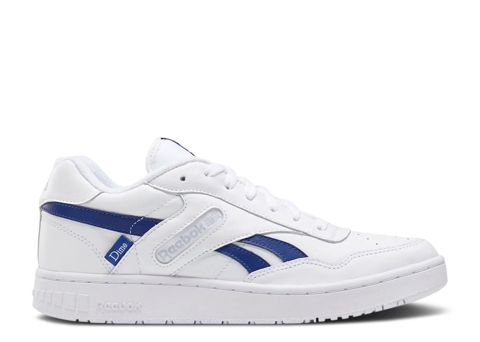 Reebok tapped the Montreal streetwear label to create the Dime x BB4000 'White Navy' in February 2021. The shoe's leather upper appears primarily in white, with blue on the Vector branding and 'Dime' quarter panel flag. The heel patch and woven tongue tag include further co-branding, with the latter sporting a design inspired by a failed art restoration that went viral in 2017. Underfoot, the rubber cupsole incorporates an EVA insert to support the fit. SKU: Q47373 Release Date: 2/12/21