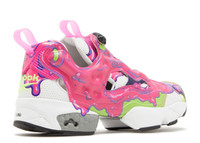 Part of a larger collection for the release of Ghostbusters: Afterlife, the Ghostbusters x InstaPump Fury 'Psychomagnotheric Slime' features a thematic look that dropped in June 2021. Drawing from the psychoreactive substance featured in the franchise's second film, also known as 'mood slime,' the shoe's white textile upper sports a dripping graphic on its signature inflatable cage. The Pump button that activates the cage includes a crossed-out red circle as a reference to the Ghostbusters' logo, while underfoot, Hexalite in the decoupled midsole provides cushioning. SKU: H03295 Colorway: Proud Pink/White/Solar Yellow Release Date: 10/13/21
