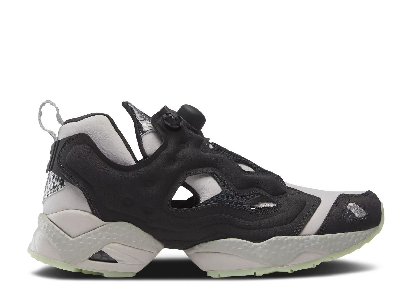 Summon the spirit of He-Who-Must-Not-Be-Named in the Reebok Instapump Fury 95 'Lord Voldemort.' These sneakers have a white leather upper with snakeskin details on the tongue, forefoot and heel. They have a dark grey inflatable cage and a green-tinged rubber outsole that glows in the dark. Eye-catching details like Voldemort's Dark Mark embossed on the front of the foot and ‘The Wizarding World of Harry Potter’ branding on the sockliner round out the design. SKU: 100201812 Colorway: Night Black/Zinc Grey/Carbon Release Date: 12/1/23