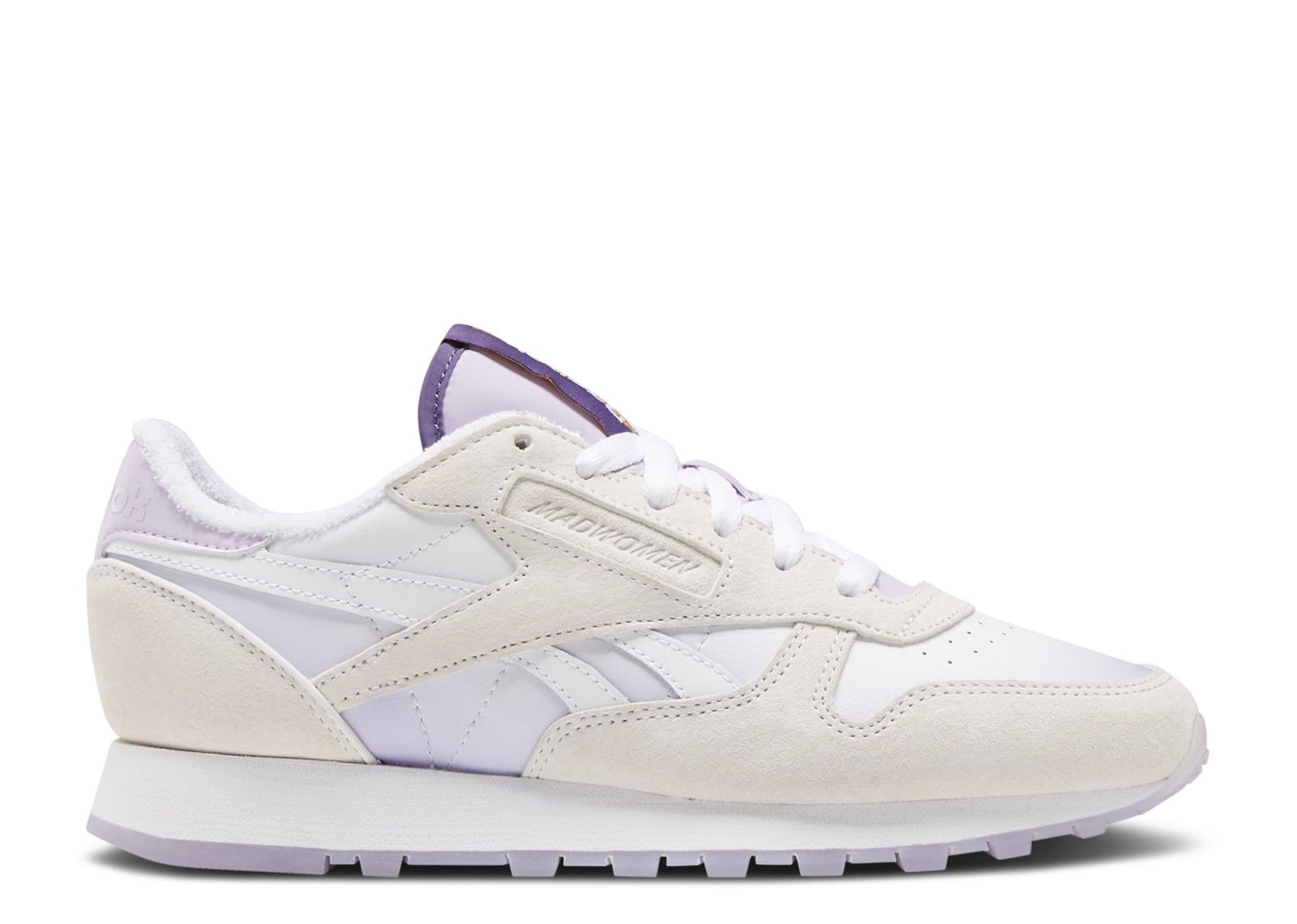 The MadWomen x Reebok Classic Leather ‘White Purple Oasis’ dons a white leather upper with lavender accents on the heel tab and tongue. A ‘MadWomen’ signoff is debossed on the side window, while a large tongue tag showcases both logos overlapping. These shoes have a full-length foam midsole anchored by a partially see-through rubber outsole. SKU: GW3828 Colorway: Footwear White/Footwear White/Purple Oasis Release Date: 6/23/22