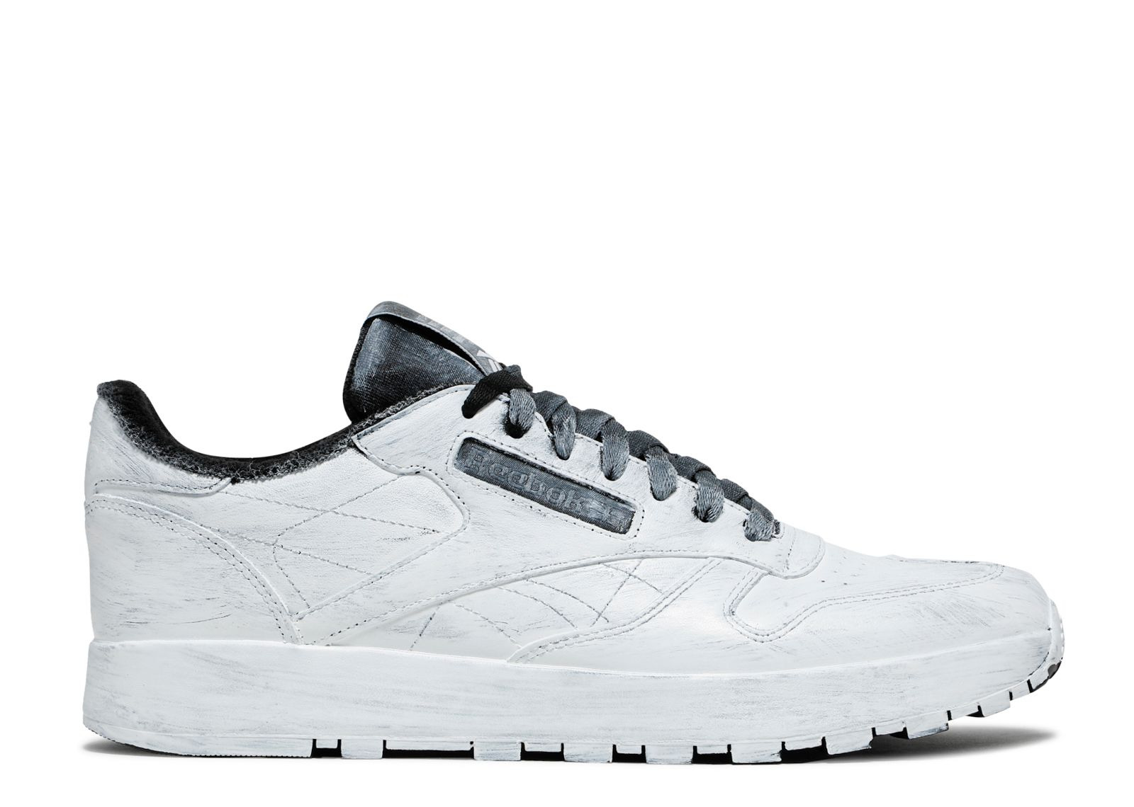 Made in collaboration with the French luxury fashion house, the Maison Margiela x Classic Leather Tabi 'Whiteout' updates its retro construction. The shoe's upper is built with premium nappa leather, with a split-toe build supporting the fit. The upper is highlighted by Margiela's hand-painted 'Bianchetto' technique, designed to chip away over time. The tongue tag includes co-branding to complete the collaborative look. SKU: H04859 Colorway: Black/White/Black Release Date: 1/29/21