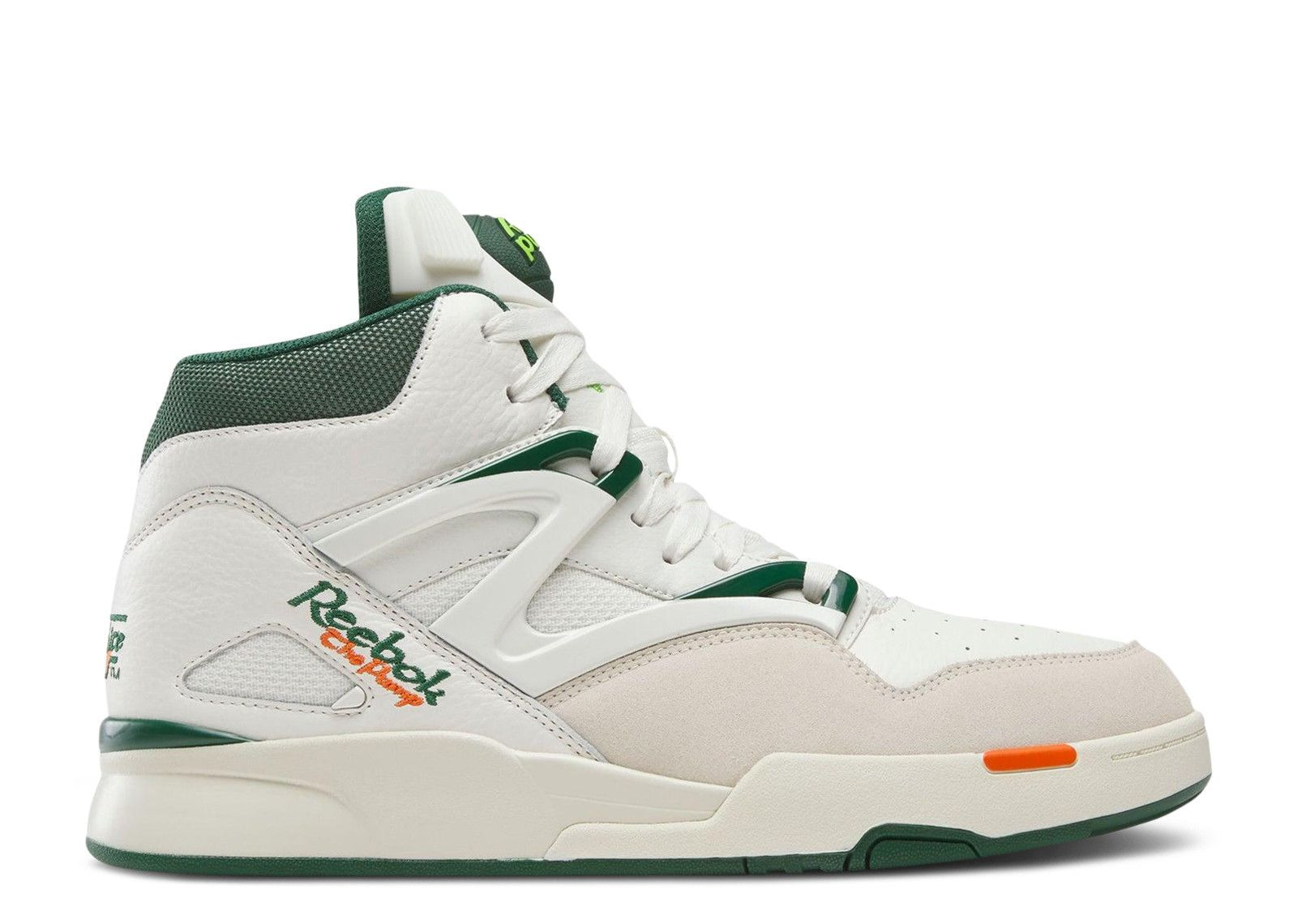 The Reebok Pump Omni Zone 2 'Chalk Dark Green' took to fame after being worn by the Boston Celtics' Dee Brown during the 1991 NBA Slam Dunk Contest. The white leather upper gets a plastic cage for containment and an off-white suede forefoot overlay. Contrasting forest green pops land on the padded collar, molded eyelets and the Pump button on the tongue. A Hexalite foam midsole helps keep every step soft and resilient. SKU: 100209103 Colorway: Chalk/Dark Green/Paper White Release Date: 6/6/25