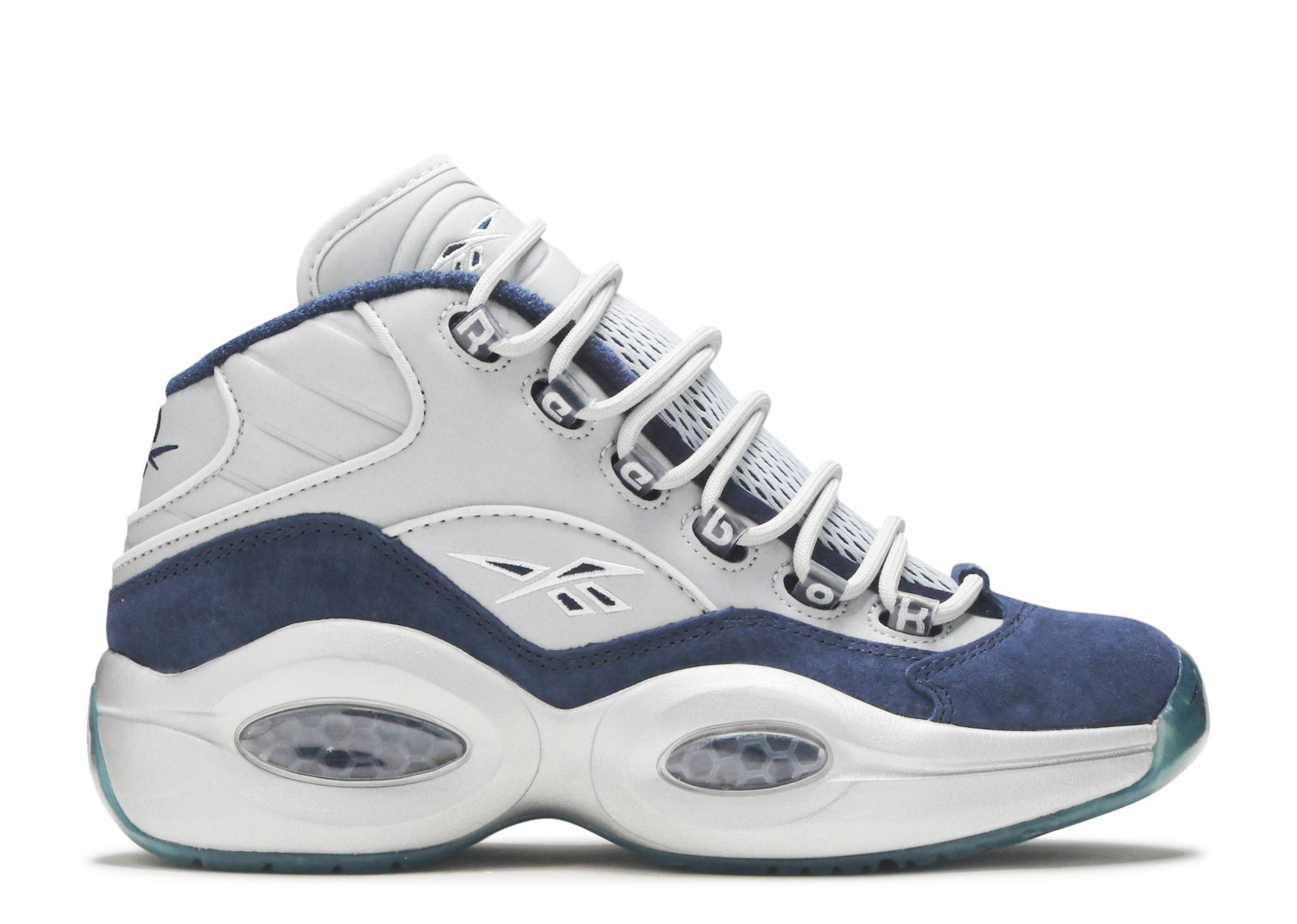 The Question Mid 'Dallas Cowboys' brings together Allen Iverson's debut signature shoe and the Dallas Cowboys. Built with grey leather, the upper is overlaid by Vector Navy suede on the mudguard and toe cap. The branding accents the look in Silver Metallic, while a terry cloth inner lining is included for comfort. Underfoot, Iverson's signature jersey number appears in the Cowboys' typeface, with visible Hexalite in the forefoot and heel providing cushioning. SKU: FZ3945 Colorway: Vector Navy/Silver Metallic/White Release Date: 9/18/20