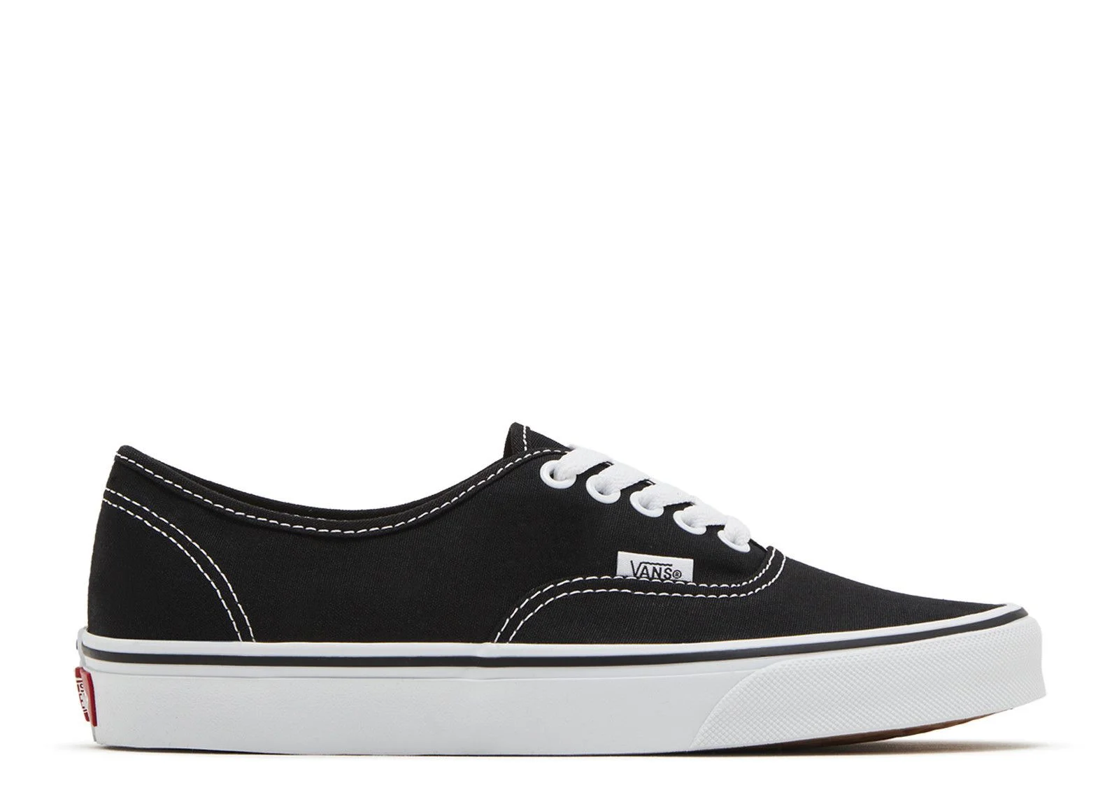 Part of Vans' original skateboarding releases in 1966, the Vans Authentic 'Black' brings a black canvas upper and exposed white stitching to contrast the look. The sidewall drops 2.75 inches from the base for a low-to-the-ground feel, while the Vans logo appears on the forefoot and heel. SKU: VN000EE3BLK Colorway: Black Release Date: 6/1/22