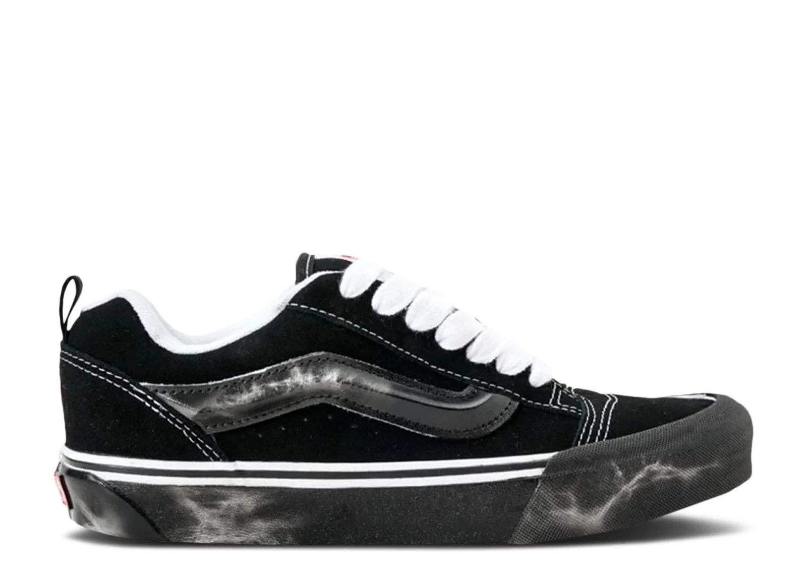 Released as part of the 'Rose Marble Pack,' the COSTS x Vans Knu-Skool 'Black' sports a black suede upper with contrast white stitching and a marbled side stripe. A stuffed tongue and a padded collar bring a comfortable feel, while COSTS' custom rose logo reigns supreme on the heel. Vans' license plate stars on the back of the black midsole, decorated in white marbled details. SKU: VN0009QC6BT COSTS Colorway: Black/White Release Date: 12/29/24
