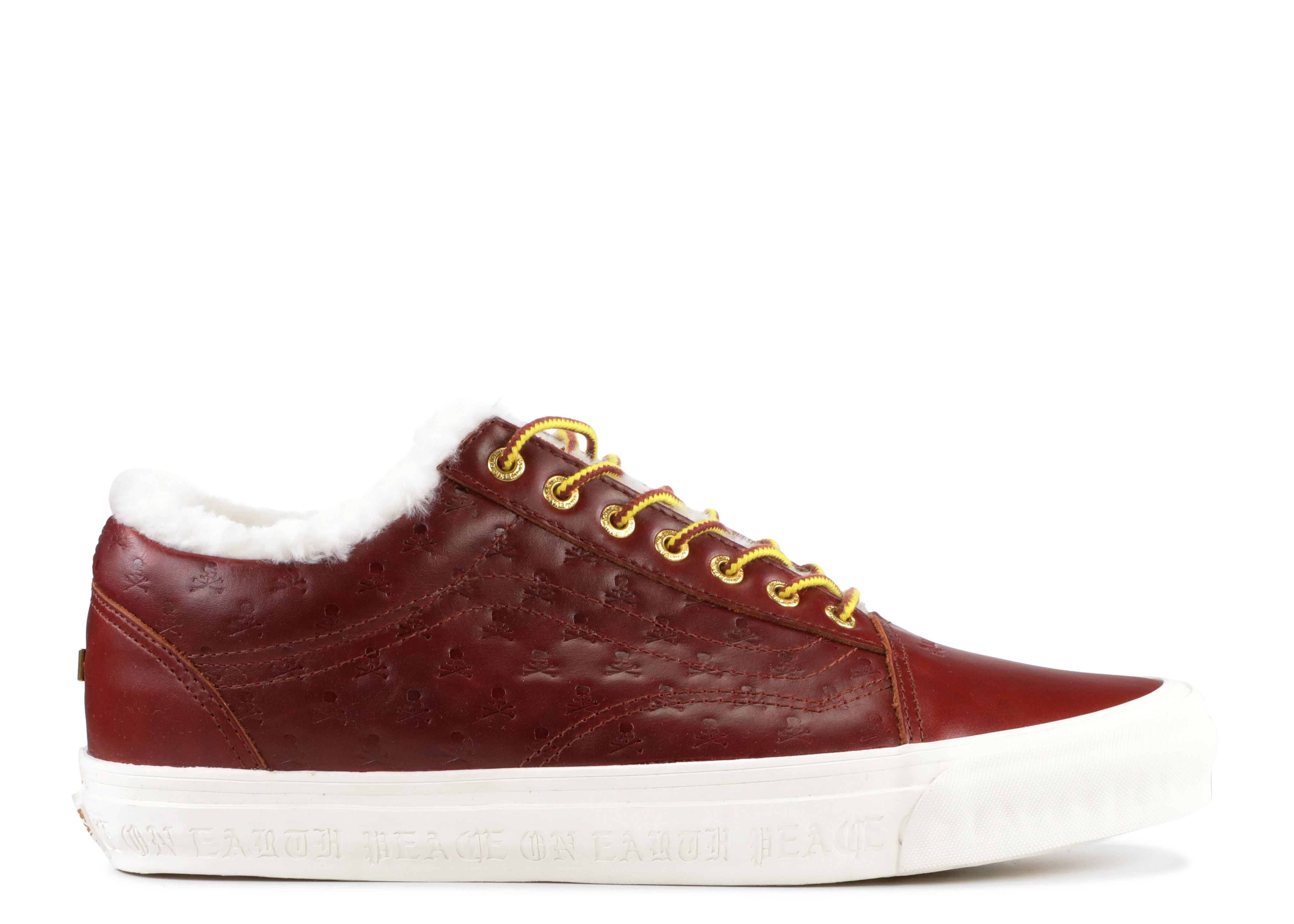 A result of a larger collection, the Kith x Mastermind World x OG Old Skool LX ‘Brown’ unites New York City and Tokyo. The brands’ dual vision revamps the Vans Old Skool with a shearling lining and brown leather upper, the latter branded with Mastermind’s skull and crossbones logo. The midsole of the left shoe is etched with ‘World on Fire,’ while the right features ‘Peace on Earth.’ SKU: VN0A36C8S5J Colorway: Brown Release Date: 1/18/19