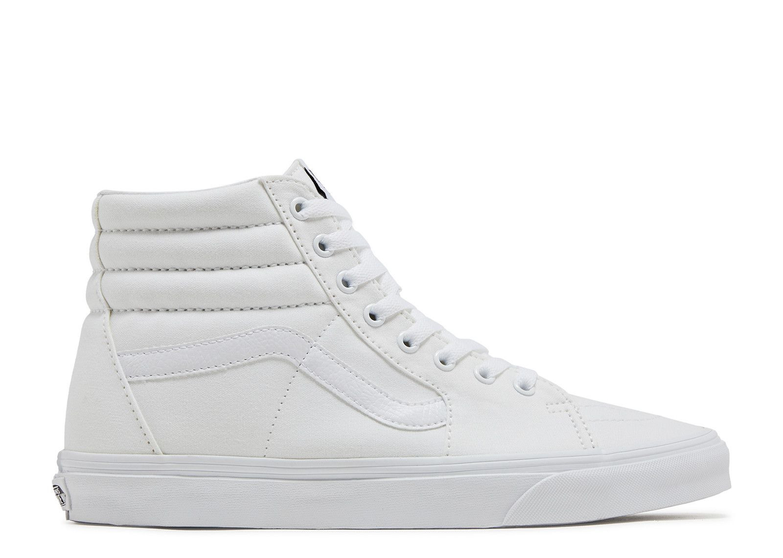 The Sk8-Hi Canvas has a white canvas upper tooled with a quilted area ankle for a comfortable feel. The classic Vans side stripe nods to the original design, while a vulcanized waffle outsole provides smooth traction underfoot. SKU: VN000D5IW00 Colorway: True White Release Date: 6/1/22