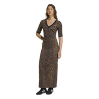 Step into bold style with the adidas Maxi Dress Aop. Crafted from a premium cotton-elastane blend, this dress delivers a flattering, tight fit with just the right amount of stretch for all-day comfort. The striking leopard print and sleek silhouette make this dress ideal for casual street style or stealing the spotlight wherever you go. Elevate your rotation with a perfect blend of elegance and attitude in the adidas Maxi Dress Aop. V-neck design delivers a flattering look. 93% cotton/7% elastane. Imported.