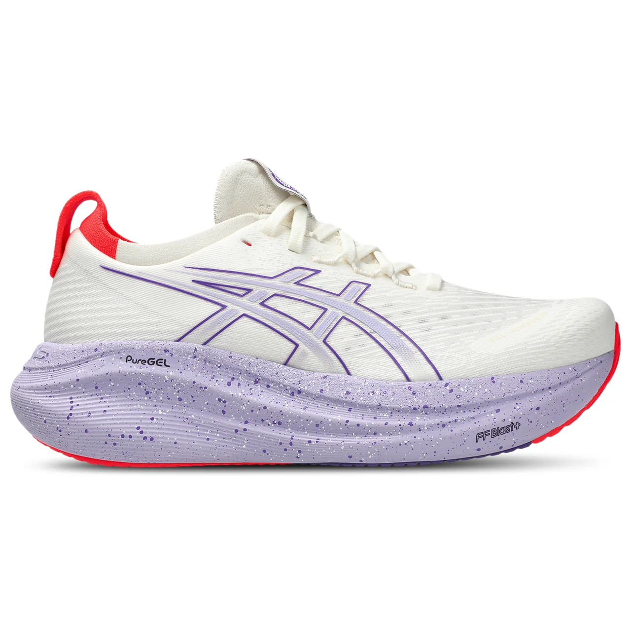 For runners who measure success in miles, not minutes, the ASICS Gel-Nimbus 27 Tokyo is your ultimate companion for going the distance. Designed to deliver sustained comfort over extended runs, these shoes feature FF BLAST PLUS cushioning—a lighter, softer midsole foam that blends cloud-like impact absorption with a responsive ride. The updated PureGEL technology, now 65% softer than standard GEL, enhancing stride efficiency. And with at least 75% recycled content in the upper, every mile you run contributes to a lighter footprint on the planet. Whether you're training for a marathon or logging your weekly long run, the ASICS Gel-Nimbus 27 Tokyo delivers the kind of comfort, grip, and resilience that long-distance runners demand. ASICS Gel-Nimbus 27 Tokyo features: Soft engineered knit and jacquard mesh upper provides stretch, ventilation, and durability. Knit tongue and collar offer a soft and supportive feel. OrthoLite X-55 sockliner provides cushioning performance and moisture management for a cooler, dryer environment. Reflective details improve visibility in low-light conditions. Hybrid ASICSGRIP rubber and AHARPLUS outsole delivers better traction and improved softness on various terrains. *The sockliner produced with the solution dyeing process reduces water usage by approximately 33% and carbon emissions by approximately 45% compared to conventional dyeing technology.