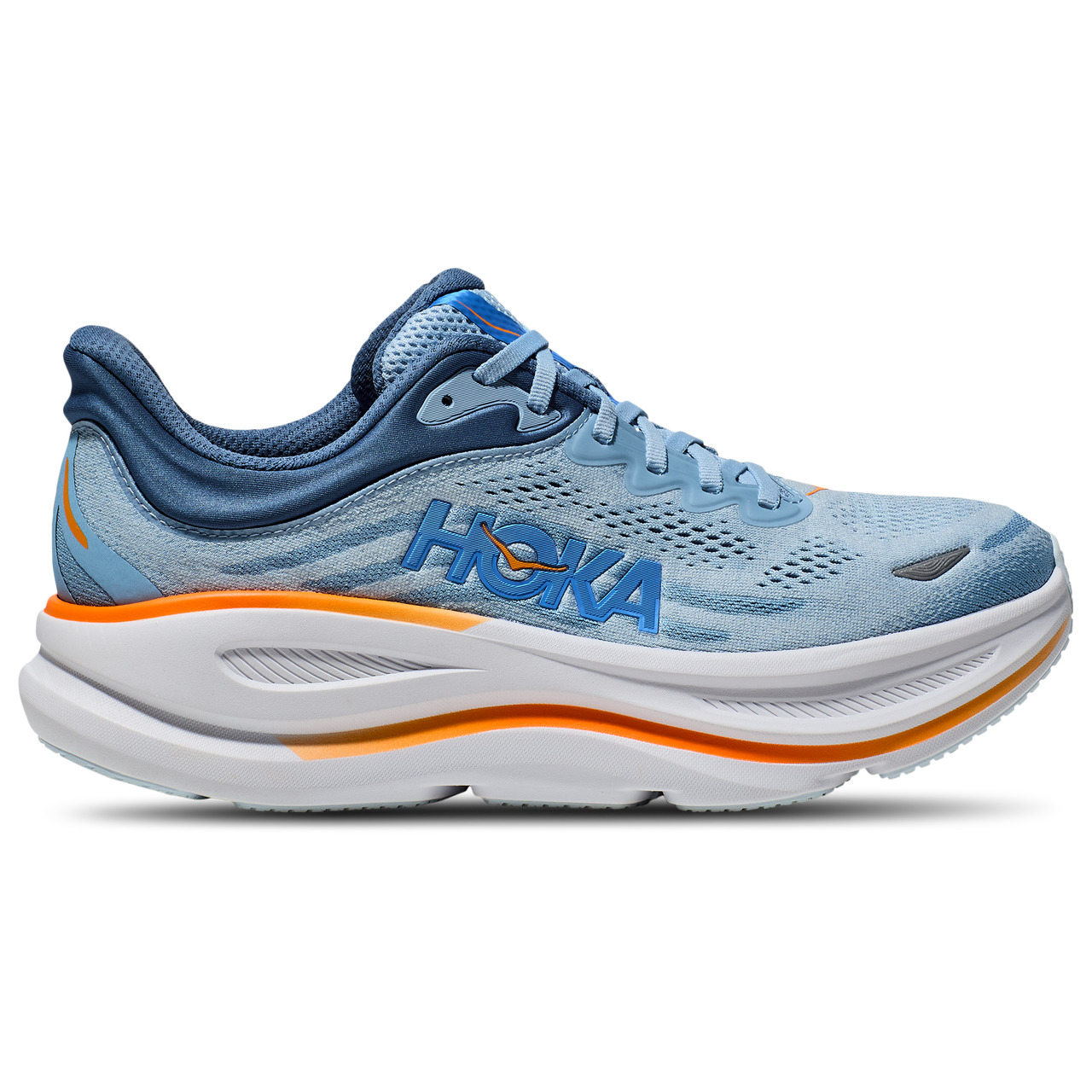 Performance-packed, comfy, and stylish, the Hoka Bondi 9 lets you do everything effortlessly. The engineered mesh upper features 55% recycled polyester for sustainable comfort and breathability, and reflective details to enable low-light visibility. The retooled 3D molded collar and EVA sockliner enhance comfort with every step. Rounded off with a super critically foamed EVA, smooth MetaRocker midsole, and rearfoot-focused Active Foot Frame, the Hoka Bondi 9 supports forward running with cushioning and a plush feel through every stride. Hoka Bondi 9 features: Knit upper ensures an accommodating fit. Extended heel pull enables easy on and off. Durable abrasion rubber outsole provides traction and support. Additional 2 mm in stack height gives an elevated feel. Weight: 10.5 oz.