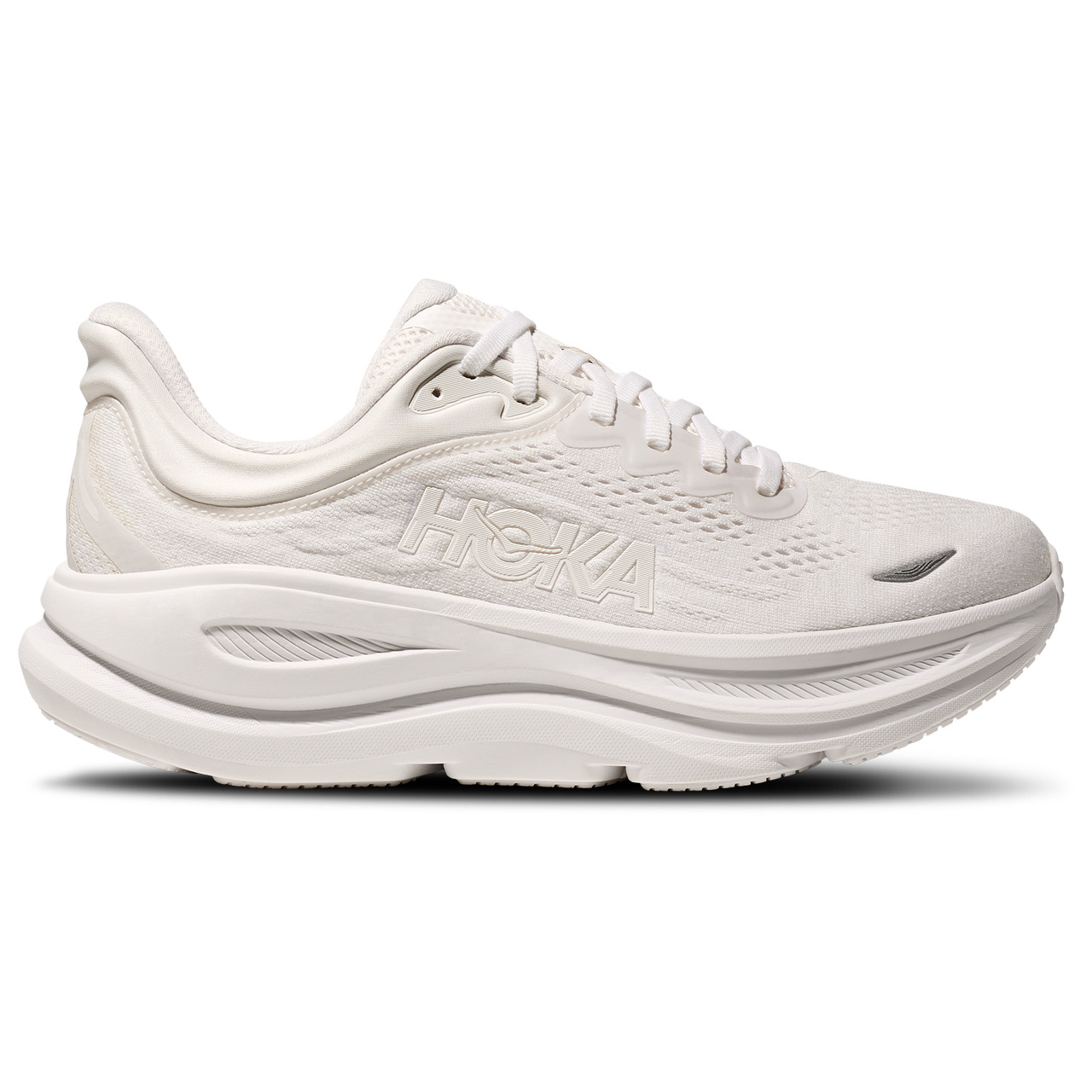 Your next great run starts with the HOKA Bondi 9. A dynamite that knows no limits, these shoes make your every ride feel effortless with a super critically foamed EVA. The smooth MetaRocker technology ensures you chase your best without any distractions. The rearfoot-focused Active Foot Frame cradles your foot for extra support, keeping your stride stable and aligned mile after mile. Featuring engineered mesh with 55% recycled polyester, these eco-conscious shoes let you leave a green and lighter footprint on the world around you. Whether you're tackling long runs or everyday training, the HOKA Bondi 9 offers the perfect balance of plush comfort and responsive support through it all. HOKA Bondi 9 features: Knit upper offers an accommodating fit. Reflective upper details ensure visibility in low-light conditions. Extended heel pull allows easy on/off. Molded EVA sockliner provides soft comfort. Retooled 3D molded collar adds extra softness and support. Durabrasion rubber outsole enhances traction. Stack height: 2 mm. Weight: 9.3 oz.
