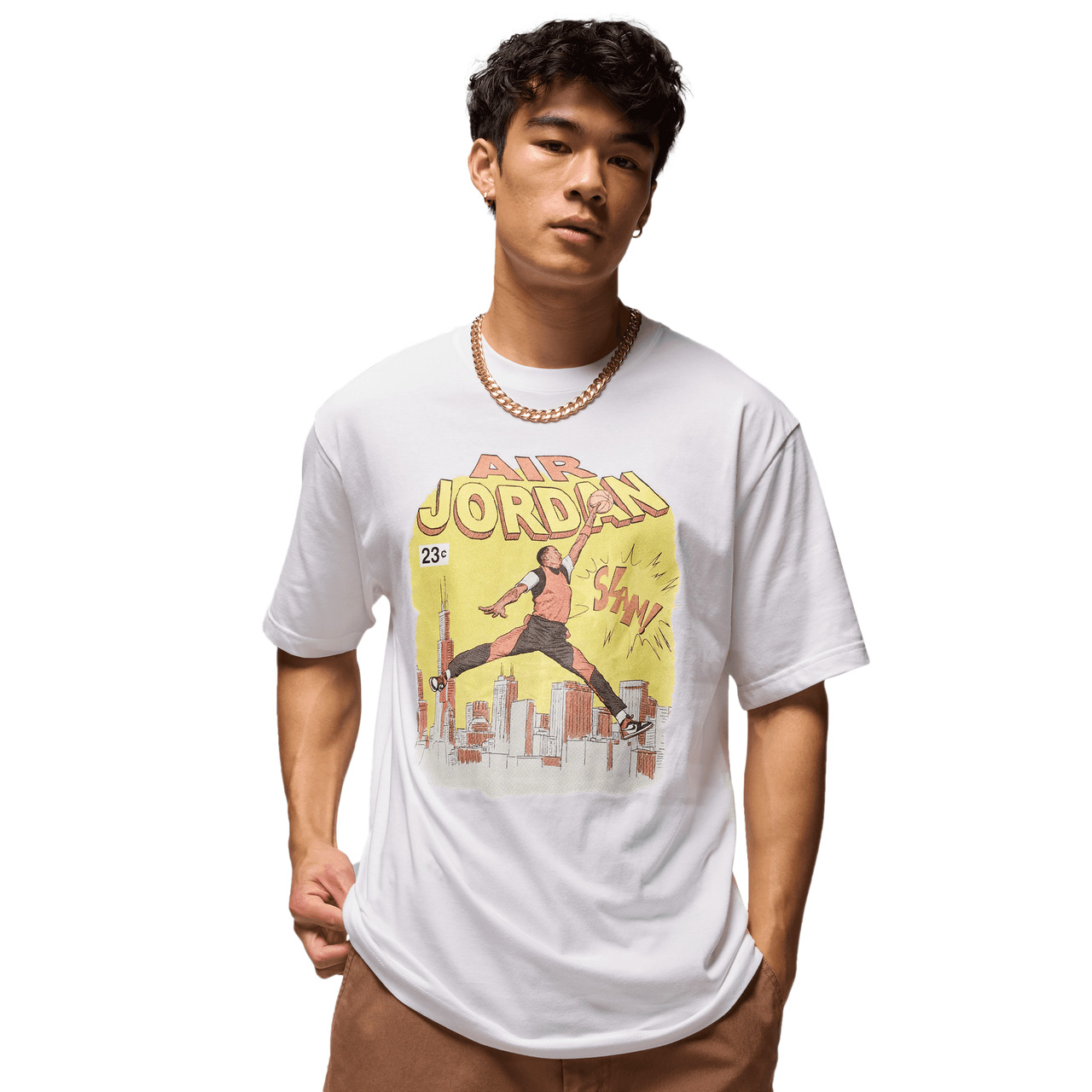 Comic vibes! Add a burst of fun to your everyday collection with the Jordan NC Comic Short Sleeve Crew. Featuring a playful comic twist on the iconic skyline, this cotton crew keeps you stylish and comfortable throughout the day. Turn every day into a fun fashion adventure and stand out in the Jordan NC Comic Short Sleeve Crew. Short sleeves allow an easy-breezy feel. Machine wash. 100% cotton. Imported.