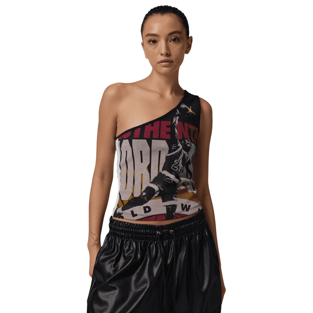 Celebrate your Jordan pride with a retro vibe in the Jordan Flight Graphic Tank D2N. Made from soft, stretchy fabrics, this top ensures all-day comfort and sits right at your hip for a flattering look. This single-strap tank top features bold, retro graphics that make a statement. Pair it effortlessly with your favorite sneakers and streetwear for a standout style with the Jordan Flight Graphic Tank D2N. Comfortable fabrics ensure a casual-cool look. Machine wash. 56% cotton/37% polyester/7% spandex. Imported.