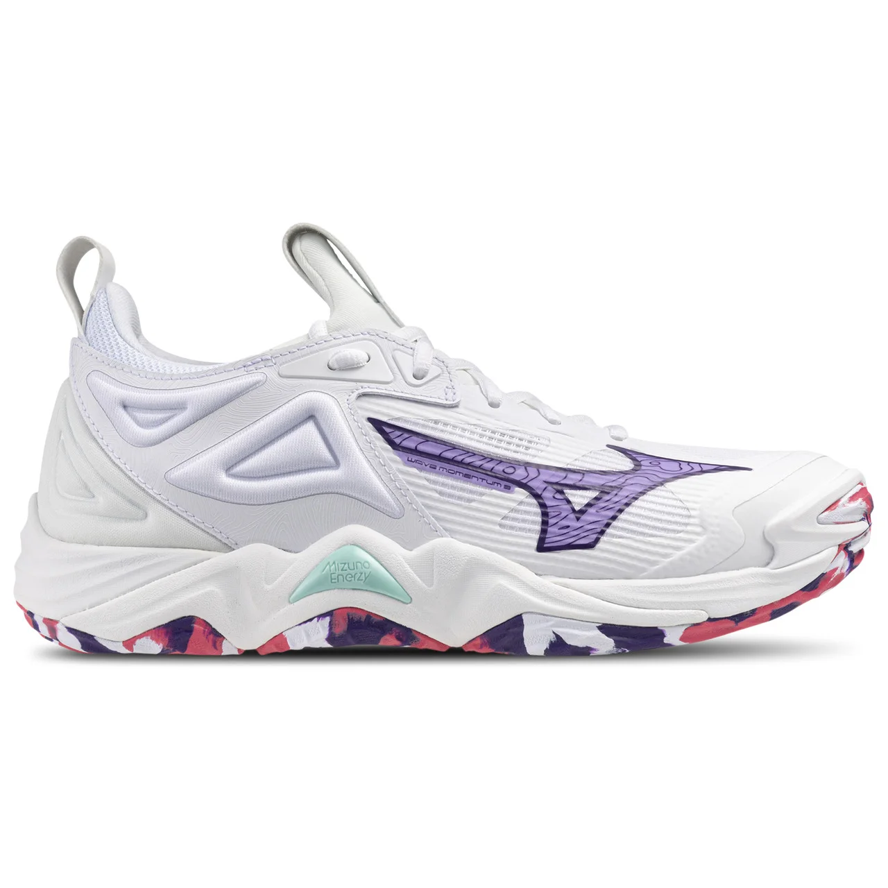 Fast lane to endless energy! Dominate the court with the Mizuno Wave Momentum 3. Featuring DynamotionFit bootie construction for a snug fit and maximum stability, these shoes let you unlock a dynamic wave of momentum with each move. The MIZUNO ENERZY Foam offers versatility, maintaining softness and resilience to help you perform effortlessly. The Dura Shield protects your toes from damage and ensures a friction-free experience during intense play. To keep you cool and comfortable, these sneakers use MIZUNO INTERCOOL, a ventilation system designed to reduce heat and humidity inside the shoe. Combining innovation with comfort, the Mizuno Wave Momentum 3 enhances your performance capabilities and makes you play like never before. Mizuno Wave Momentum 3 features: MIZUNO WAVE provides stability and cushioning at the heel. New eyelet structure delivers an optimal fit. Removable sockliner offers soft cushioning. U4icX strobel-lasting board ensures a comfortable underfoot feel. MIZUNO WAVE PLATE disperses energy from impact to a broader area and adds stability and cushioning. XG Rubber, an extra-grade rubber, enhances traction and grip.