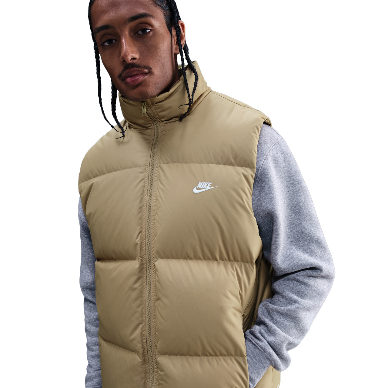 Stay warm and look cool with the Nike Club Puffer Vest 550. Featuring Nike Storm-FIT technology, this vest resists cold winds and water to keep you comfy during harsh weather. The zippered pockets keep your essentials secure, while the bungee drawcord at the bottom hem brings flexibility and styling options to the mix. Stay fashionably snug with the Nike Club Puffer Vest 550. Water-repellent finish ensures a dry and secure feel. Machine wash. Body/Lining: 100% polyester; Fill: Grey duck down (Minimum 85% down)/(APA version: 85% grey duck down/15% feathers). Imported.
