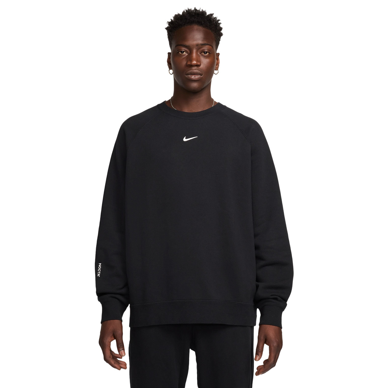 Comfort that never compromises on style! Designed for hard looks and high function, the Nike NRG Nocta CS Fleece Crew is a go-to staple you'll turn to time and again. Made from super soft fleece, this crew lets you spin through every obstacle that comes your way with ease. What truly sets this crew apart is a silicone Swoosh logo that adds an unexpected twist to this contemporary ensemble. Perfect for every mood and occasion, the Nike NRG Nocta CS Fleece Crew lets you dial up your style and attitude to a 100. Ribbed cuff and hem retain the shape. NOCTA branding offers a signature look. Machine wash. 82% cotton/18% polyester. Imported.