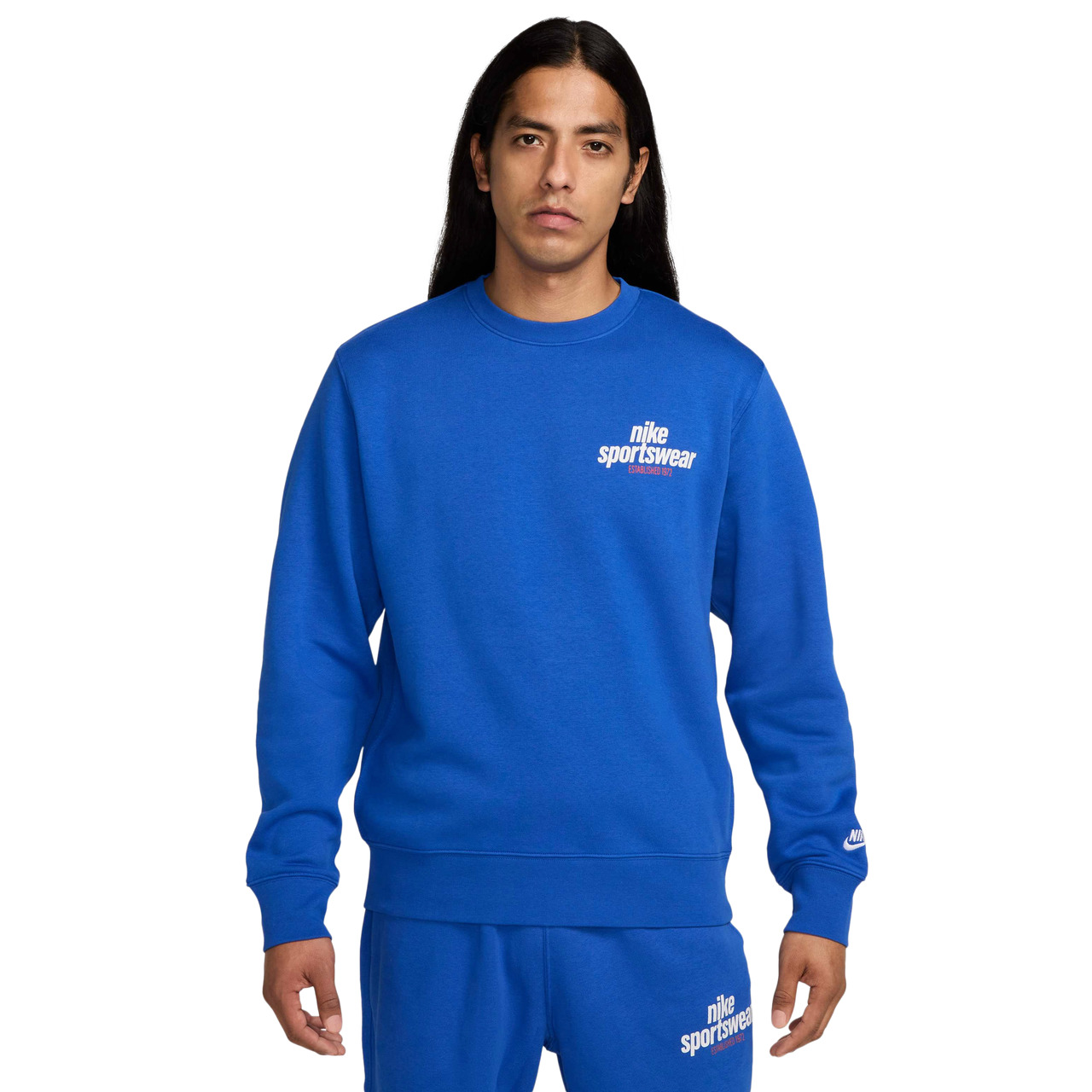 Clean, casual, classic—the Nike NSW Club BB Crew GFX is all about laid-back vibes and effortless style. Made from midweight brushed fleece that feels extra soft on the inside and smooth on the outside, this crew keeps you cozy while maintaining a structured shape all day long. Bring a touch of relaxed sophistication to your everyday looks with the Nike NSW Club BB Crew GFX. Standard fit allows easy layering. Embroidered Nike Futura logo adds a pop of style. Machine wash. 80% cotton/20% polyester. Imported.