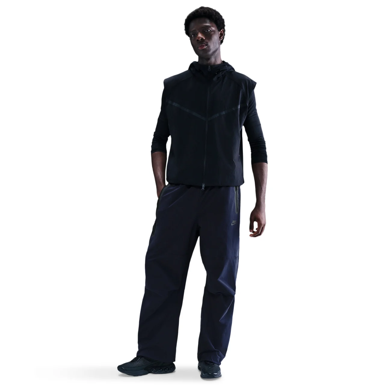 Flow with fashion! Sweep through your day in style with the Nike Tech Woven Pants OS. Taking signature Tech Fleece DNA and mixing it with stylish design, these oversized pants let you enjoy the lighter side of life. The wide leg is accompanied by Tech bungees and locks at the hem to give you styling options and the freedom to move. An elongated and cool pocket with a closure on the back gives you space to stash your valuables. To top it off, these pants boast iconic Bemis taping and framed zip pockets, premium top stitch seams, and articulated knees—setting a new standard of functionality. Expand your style horizons with the Nike Tech Woven Pants OS. Nike Tech Woven Pants OS features: Smooth, stretchy elastic waist offers an adjustable, snug fit. Nike Dri-FIT technology moves sweat away and delivers a cool, comfortable feel. Two pockets and two entries with Tech Zip closures and a signature Tech Zip pocket on the left provide ample space to stash essentials. Nike Futura logo adds iconic detail. Machine wash. Body: 94% nylon/6% spandex; Pocket bags: 100% polyester. Imported.