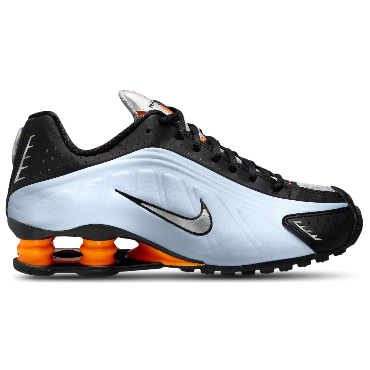 Legend is back with a bang! An electrifying revival of the 2001 icon, the Nike Shox R4 is here to shake up your sneaker game. Originally designed for runners, these silhouettes feature Nike Shox cushioning that distributes weight to maximise comfort and provide a performance-inspired look—letting you make some serious moves. Packed with laser perforations, these sneakers deliver proper ventilation and keep your feet feeling fresh and cool all day long. Bounce back to those legendary vibes while forging ahead like a boss with the Nike Shox R4. Nike Shox R4 features: Synthetic and textile upper is a near-exact replica of the original 2001 Nike Shox that offers a timeless look. Nike Shox columns provide responsive cushioning. A modified, circular waffle outsole delivers traction.