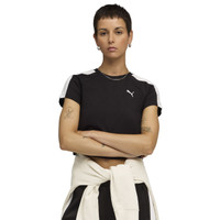 Add a sporty edge to your everyday style with the PUMA T7 BABY TEE. This slim-fit, cropped T-shirt features iconic T7 panel inserts and a ribbed crew neckline for a classic, sport-inspired look. Crafted from comfortable single jersey fabric, this T-shirt is designed to make a statement. End your hunt for the perfect classic with the PUMA T7 BABY TEE. Iconic Cat logo branding ensures a classic signature look. Piece dyed with regular chemical finishing and mechanical UPF. 70% cotton/25% recycled cotton/5% elastane single jersey; 250 GSM. Imported.