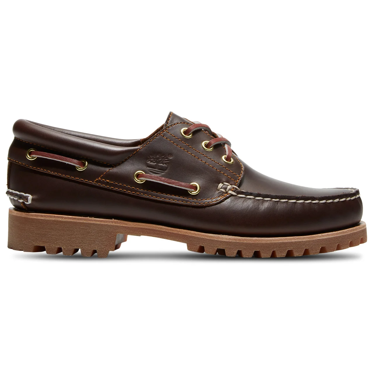 Sail in comfort and anchor your style! Step into timeless elegance and unmatched comfort with the Timberland Authentics 3-Eye Boat Shoe. Constructed with premium Timberland Leather upper and hand-stitched for a touch of heritage craftsmanship, these iconic shoes have set the benchmark for sophistication since 1978. Designed with care and ethics, the 3-Eye Boat shoe combines classic style with modern durability, so you're ready to conquer the day on deck or the streets. Make every step a statement of style and purpose with the Timberland Authentics 3-Eye Boat Shoe. Timberland Authentics 3-Eye Boat Shoe features: 360 degrees functional lacing system ensures an adjustable fit. 3/4-length leather-lined footbed provides step-in comfort. Traditional handsewn construction maximizes durability. Rugged boot lug rubber outsole delivers superior traction. *Timberland supports responsible manufacturing of leather via the Leather Working Group.