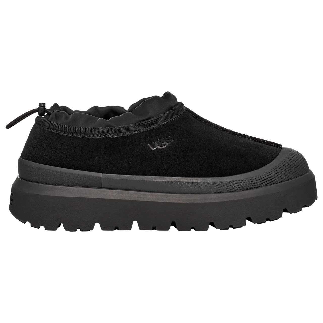 Ride out the storm and hedge against the weather with the UGG Tasman Weather Hybrid.From sweeping through waterways and puddle-stomping to lounging at home, these boots keep your feet happy, dry, and fresh through it all. The contoured EVA footbed offers a comfortable stride, while the SugarSole EVA outsole keeps you sure-footed as you conquer the toughest of terrains. Rugged, uber-cool, and waterproof, the UGG Tasman Weather Hybrid lets you drip, drop, and splash in style. UGG Tasman Weather Hybrid features: Seam-sealed construction delivers a snug fit. Waterproof suede keeps the elements at bay. Elastic lace (45% recycled polyester/55% latex) and toggle allow an adjustable fit. Silicone galosh and permanent foam galosh offer protection from wet weather. Heat-embossed UGG logo provides a signature look. Lining: 17mm UGGplush; 60% upcycled wool/40% lyocell. Cold weather rated to -20°C. 11.82 oz. Best for: Light or moderate rain, light snow.