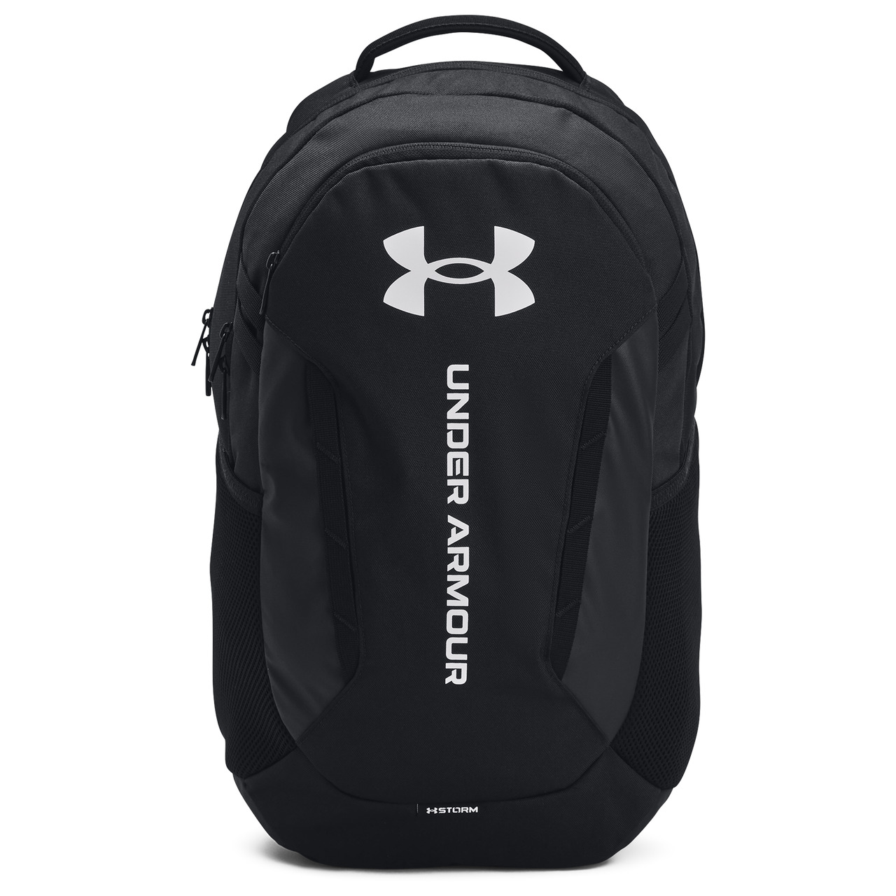 Built to support you on your fitness journey, the Under Armour Hustle 6.0 Backpack can hold anything from your water bottle and recovery tools to lifting belts. Highly durable and water-repellent, this backpack has all the space you need to keep your kit organized. The breathable air-mesh padded back and adjustable HeatGear shoulder straps ensure a comfortable feel all day long, while the 2D rings and molle webbing on the shoulder straps provide additional attachment points. Whether you're a seasoned athlete or simply passionate about fitness, the Under Armour Hustle 6.0 Backpack is going to be the perfect partner for you and your adventures. Under Armour Hustle 6.0 Backpack features: UA Storm technology delivers an element-battling, highly water-resistant finish. Soft-lined laptop sleeve offers safe storage for up to 15" laptops. Water-repellent front valuables pocket provides secure storage. Large, gusseted front laundry/shoe pocket placed at the bottom of the bag keeps dirty belongings separated. Two side water bottle pockets ensure easy access to drinks. Tough, abrasion-resistant bottom panel allows long-lasting use. Top grab handle enables comfortable carrying. Dimensions when full: 6.3" W x 20.1" H x 12.6" L. Volume: 1,769.7 cu in/29 lt. 100% polyester.
