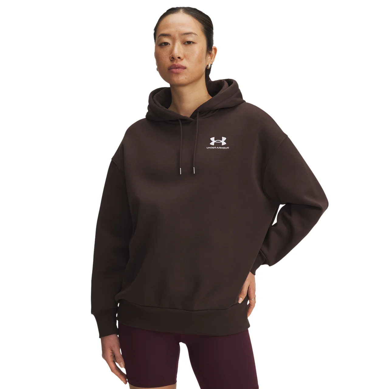 Stay warm and comfortable with the Under Armour Icon Fleece Oversized Hoodie. Crafted from ultra-soft, mid-weight cotton-blend fleece with a brushed interior, this hoodie delivers cozy warmth suited to everyday wear. The oversized fit, drop shoulders, and extended body length create a relaxed, modern look, while the ribbed cuffs and hem provide a secure, comfortable feel. Ideal when layering or lounging, this hoodie blends effortless style with all-day comfort. Own the moment with the Under Armour Icon Fleece Oversized Hoodie. Under Armour Icon Fleece Oversized Hoodie features: Soft, mid-weight cotton-blend fleece offers cozy warmth and easy comfort. Oversized fit ensures an easy-breezy feel. Extended length adds coverage and effortless style. 80% cotton/20% polyester. Imported.